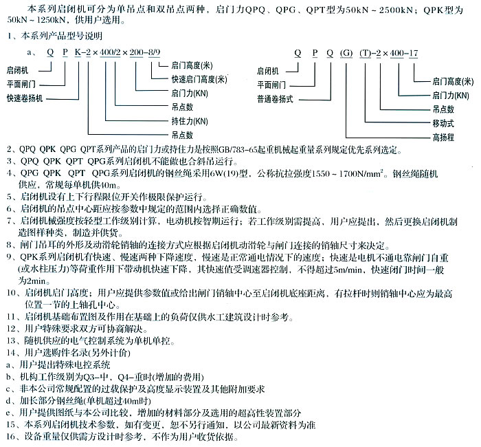 QPQ、QPK、QPT、QPG型啟閉機選用指南